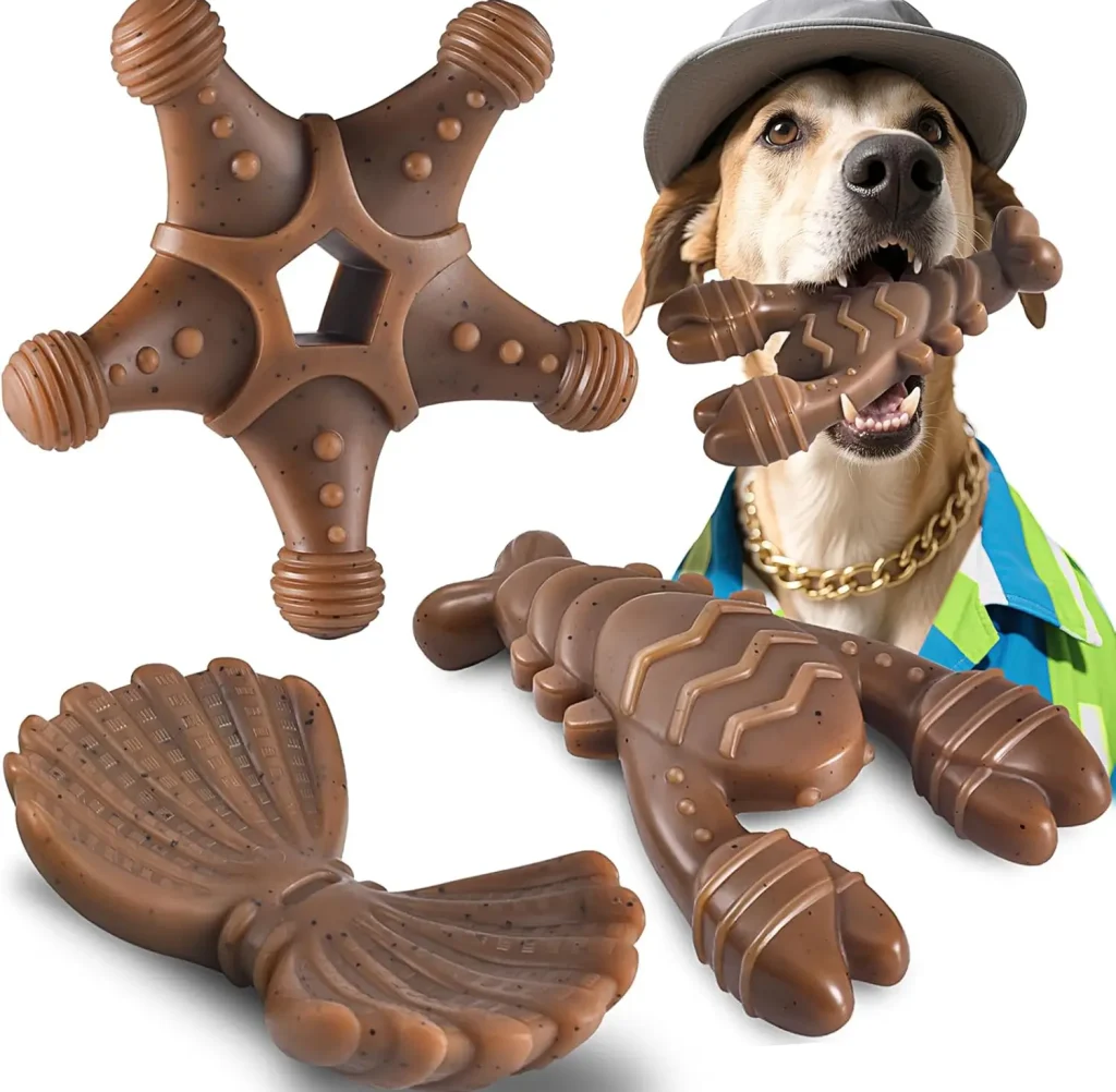 Descubre este divertido y resistente set de juguetes con temática marina —estrellas de mar, conchas y langostas— diseñado especialmente para perros masticadores agresivos. Fabricados con nylon de grado alimenticio, son seguros, duraderos y casi indestructibles, ideales para razas medianas y grandes. Ayudan a aliviar el estrés, liberar energía y fomentar hábitos saludables de masticación mientras cuidan la salud dental de tu perro.